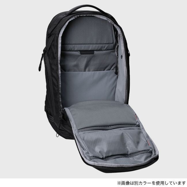 独立式ラップトップコンパートメントを背面に備え、仕分けポケット、アタッチメントループも充実しています。