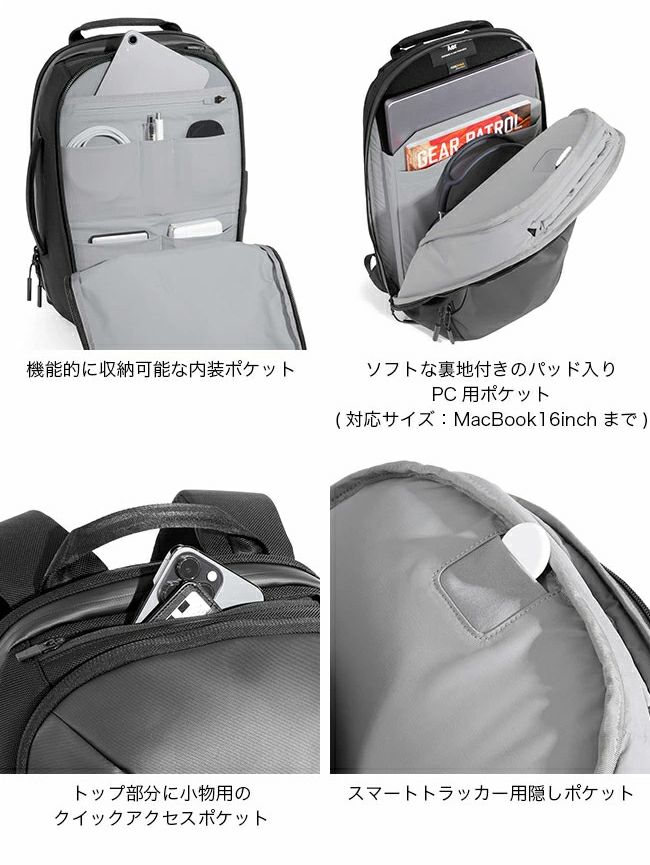ミニマルなデザインの中にギアをスマートに整理する機能を備え、そして自立性の高さが特徴です。
