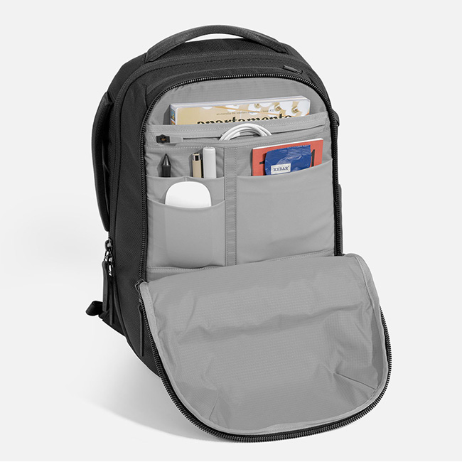 スマートなデザインで日々持ち運ぶ必需品を整理して収納可能な機能的なポケットを備えています。