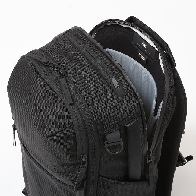 広々としたフラットに開くメインコンパートメントが特徴で、日々使用する必需品を収納できる内装と一日中背負っても快適な人間工学に基づいたハーネスシステムを備えています。