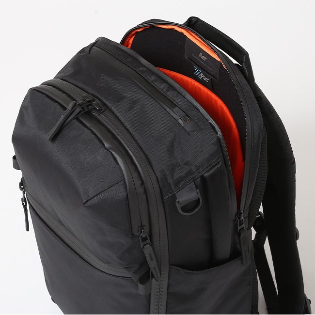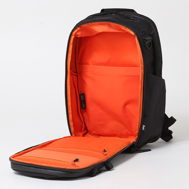 広々としたフラットに開くメインコンパートメントが特徴で、日々使用する必需品を収納できる内装と一日中背負っても快適な人間工学に基づいたハーネスシステムを備えています。