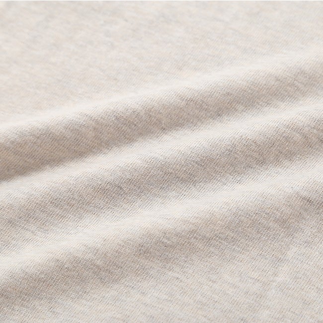 インド綿特有の油分が含まれている為ソフトでしっとりとした風合いで、光沢感があり度詰めで編むことで綺麗な表面に仕上げられています。