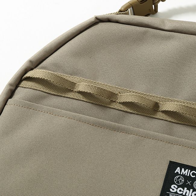 フロントにウェビングテープがついており、小物を引っ掛けることが可能。