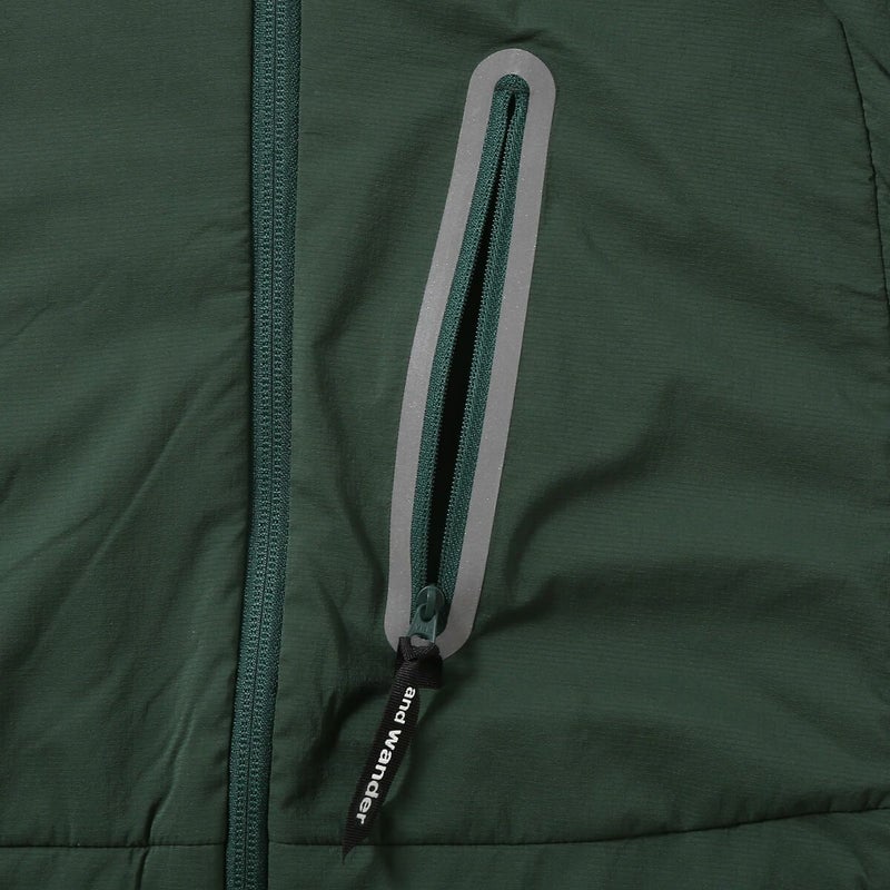 中綿を包む表地は30cm3/cm²・s、裏地は65cm3/cm²・s(フラジール形法ASTM D 737)の通気度の高い耐久撥水生地を使用しており、保温性は確保しながら、身体を動かすことによって発生する熱や汗をスムーズに放出します。