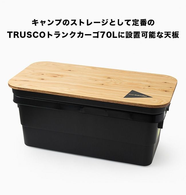 キャンプのストレージとして定番のTRUSCOトランクカーゴ70Lの蓋を裏返して、天板を設置することで高さ約36cmのローテーブルとして使用することが出来ます。