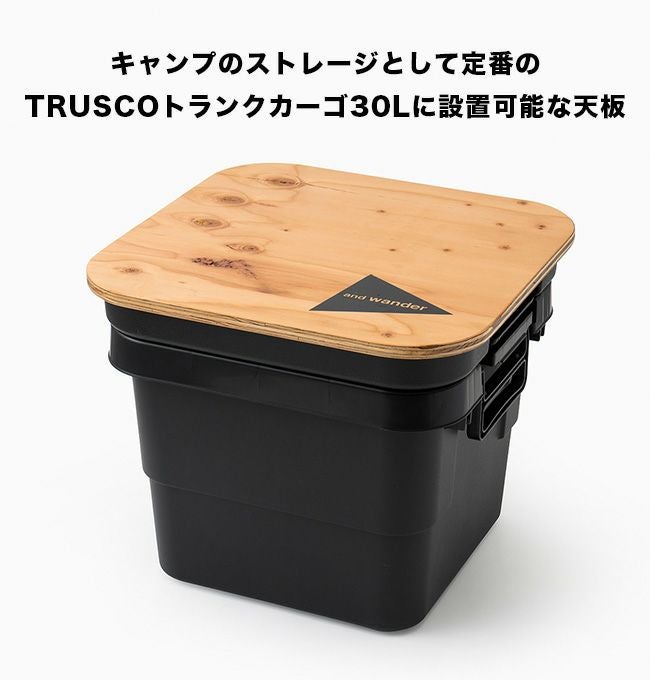 キャンプのストレージとして定番のTRUSCOトランクカーゴ30Lの蓋を裏返して、天板を設置することで高さ約36cmのローテーブルとして使用することが出来ます。