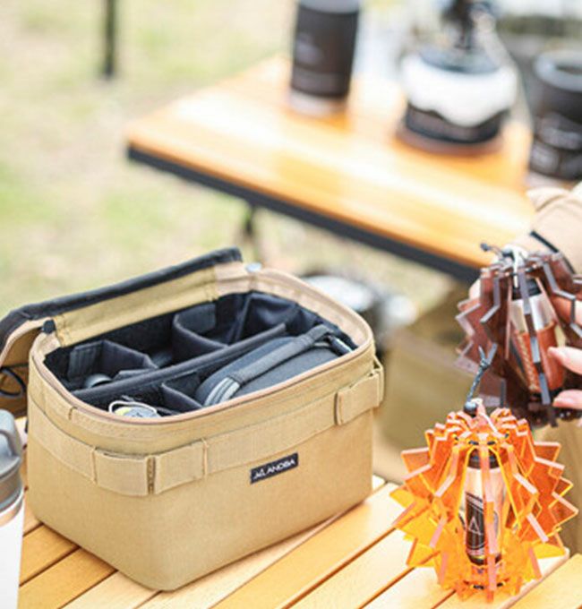 ちょうどいいサイズ感で、ランタンケースにしました!仕切り板も自分で好きに調整できるので、ランタンのサイズに合わせて調整すればいい感じ収納できそうです。