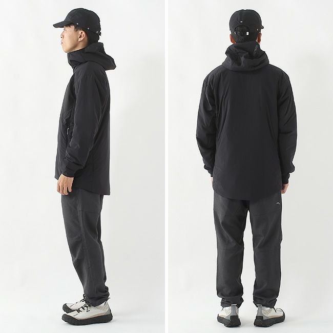 高負荷アクティビティを想定した、抜群の耐久性と通気性を誇る、合成素材の軽量高断熱フーディ。