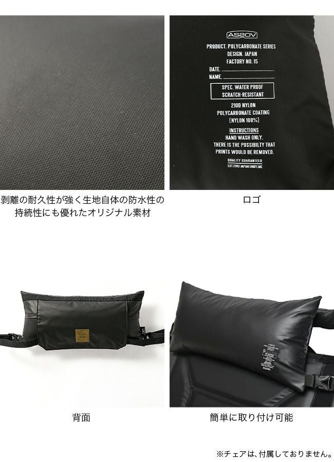 210D ナイロンにポリウレタンを4回、その上に2回ポリカボネートのコーティングを施した生地を使用しています。