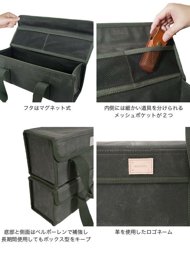 フラップ式のフタは中身が見やすく、道具の出し入れもかんたんなボックス型ケース。