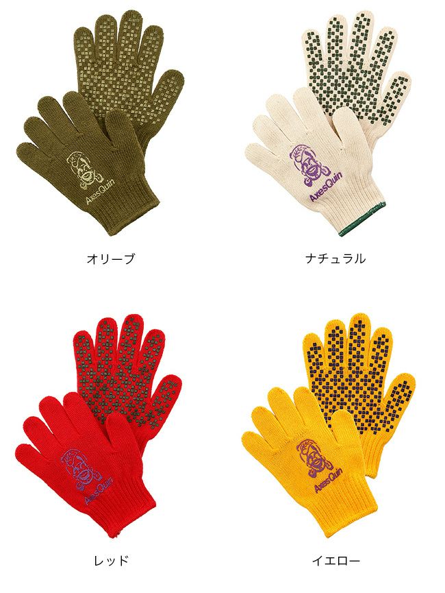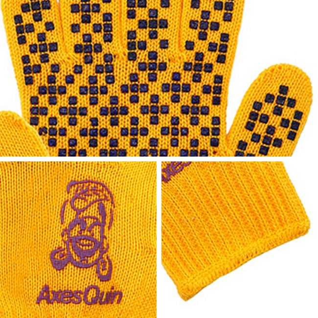 手のひら部分にアクシーズクインロゴの滑り止めプリント付き。