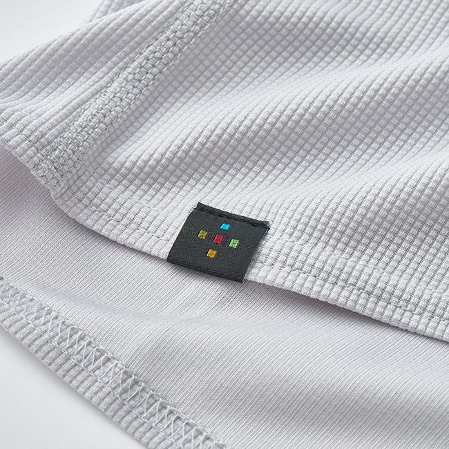 異次元の通気度を誇るPOLARTEC Power Dry Meshはワッフルのような厚みのある素材ですが、大き目のメッシュ構造によって驚くべきベンチレーション効果が得られ、ミント由来の抗菌防臭加工によって汗の臭いを軽減します。