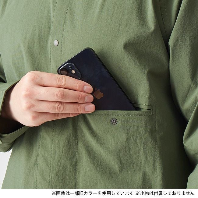 バンドカラーで衿周りをすっきりさせた、薄すぎず厚すぎない、秋冬シーズンにちょうどいい厚みのソフトシェルのロングシャツです。