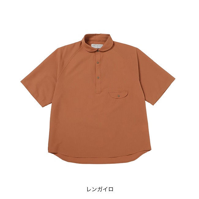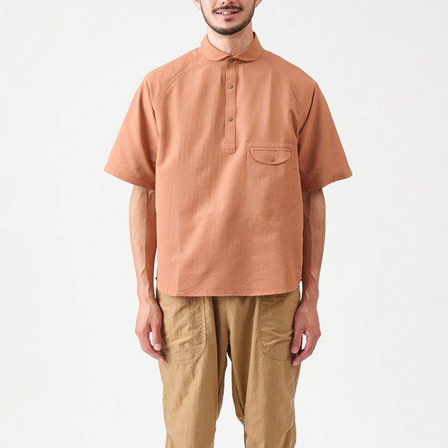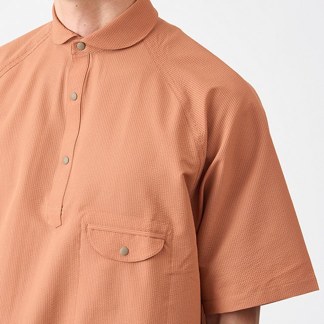 ショートラウンドカラーがアクセントの半袖プルオーバーシャツです。