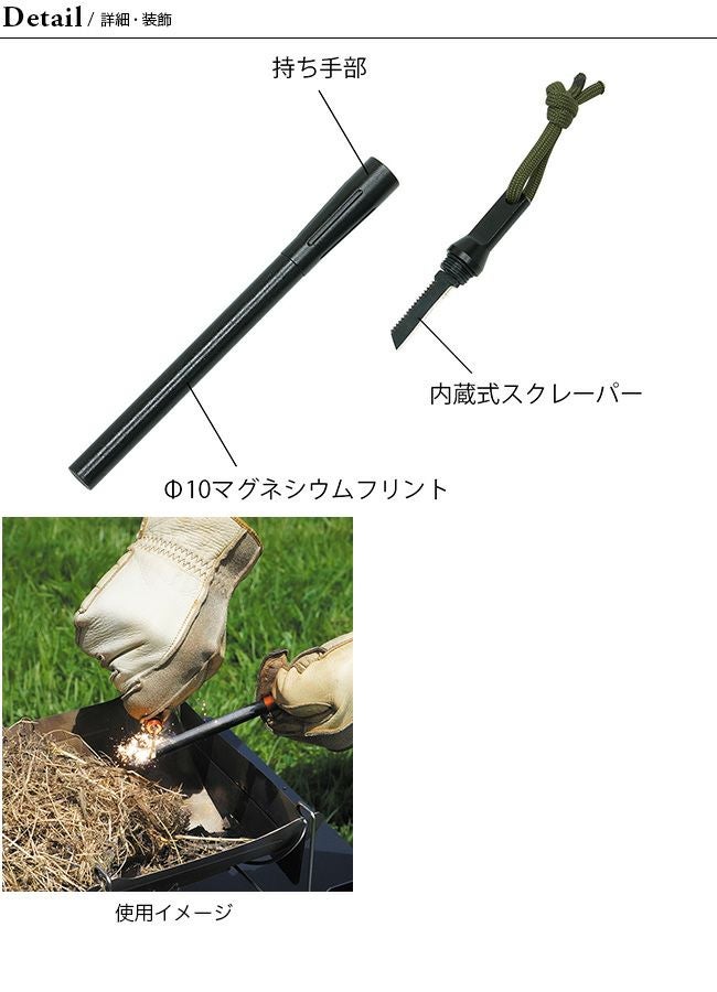 太さΦ10×長さ94mmのマグネシウムフリントで火花が大きく出ます。