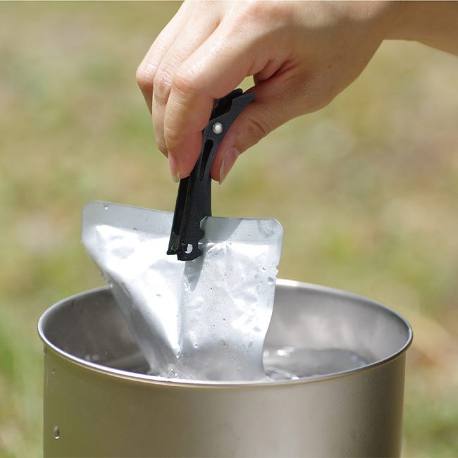 簡単な上げ下ろしは前側、長時間持つときは後ろ側を使い、湯煎したパウチなども持ち上げることができます。