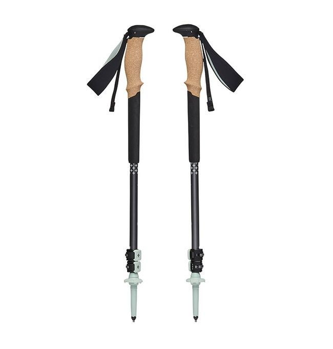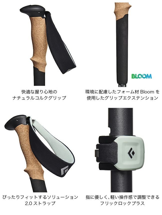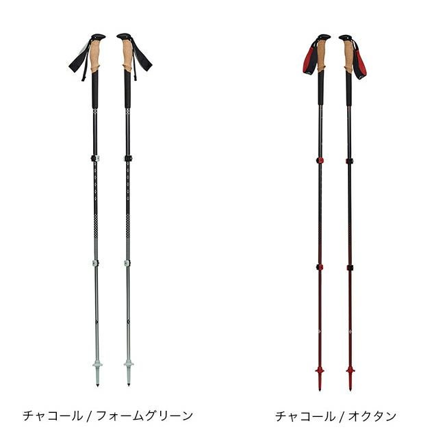 ナチュラルコルクグリップ、フリックロックプラス、ソリューション2.0ストラップを組み合わせたプレミアムなトレッキングポール。