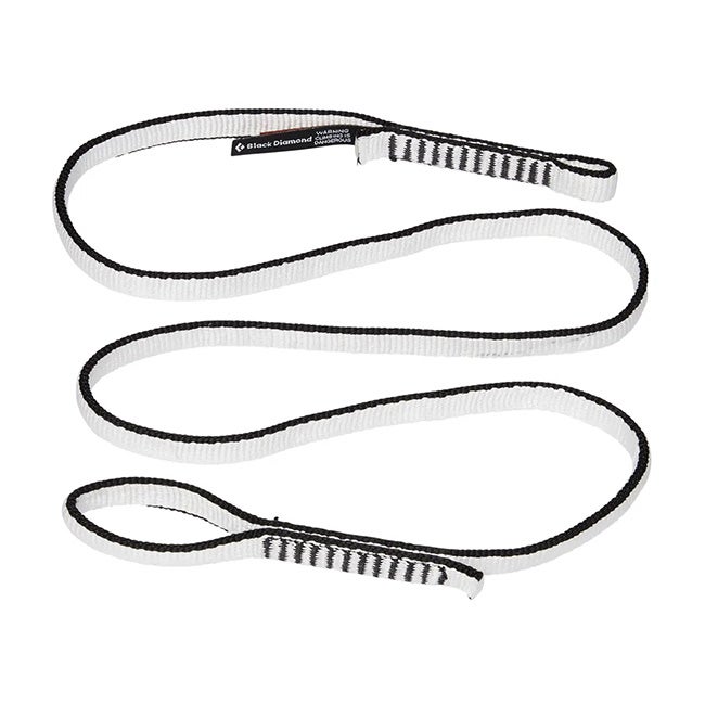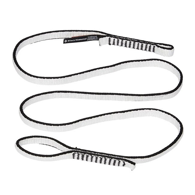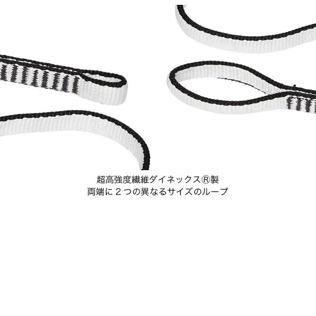 2つのループはそれぞれサイズが異なり、小さい方はカラビナを通すのに、大きい方はガースヒッチで結びつけるのに適しています。