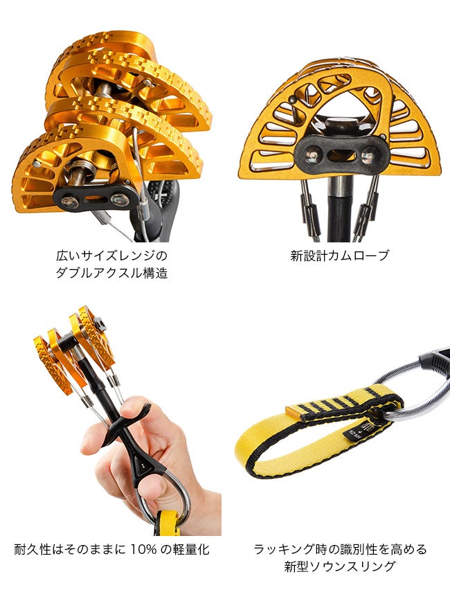 1987年の登場以来、トラッドクライミングの定番として世界中で信頼されてきたカム型プロテクション。