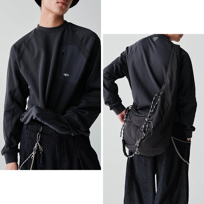 チェーンファスナー付きのプレスドシームチェストポケットを配置しており、貴重品も安心して収納できます。