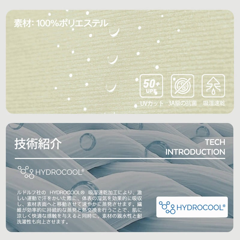 ルドルフ社製の吸湿速乾助剤を配合し、汗を素早く逃がし肌へのベタつきを防ぎます。