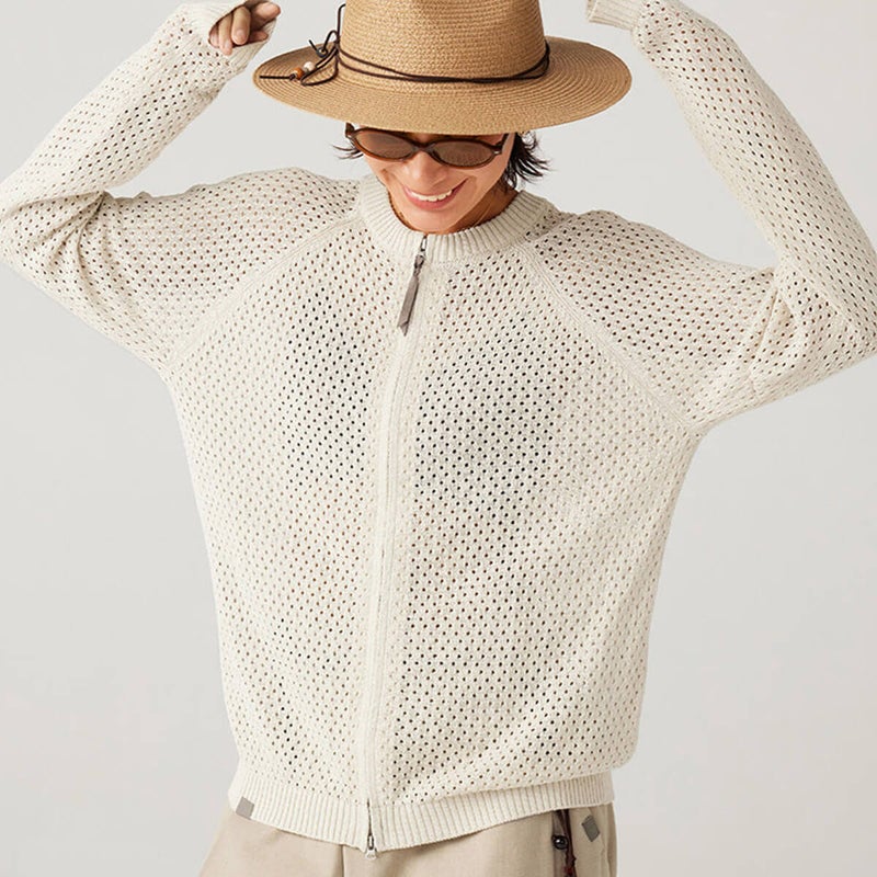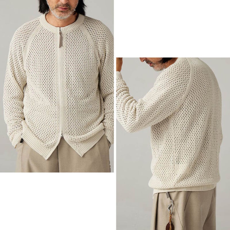 自然と技術の調和をコンセプトにした、高級感ある質感のメッシュカーディガン