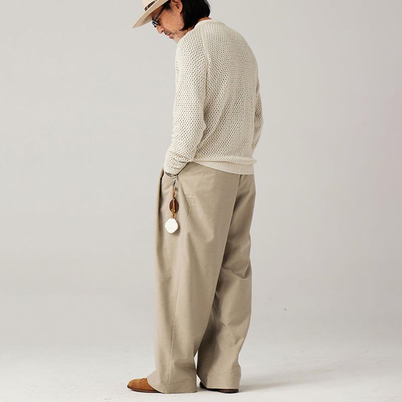 天然繊維と紙糸(Abacell)のブレンドにより、サステナブルな素材感と先進的なテクスチャーを融合。