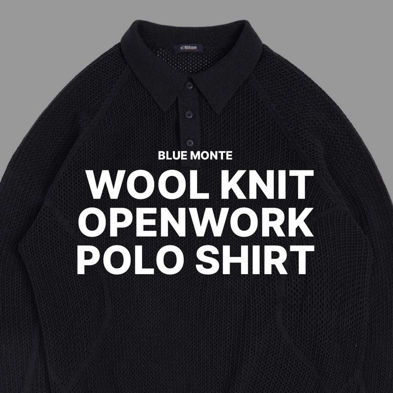 BLUE MONTE ブルーモンテ ウールニット オープンワーク ポロシャツ