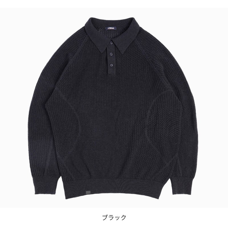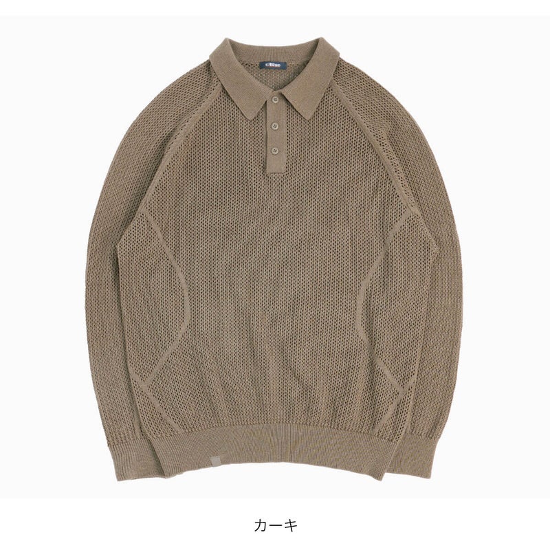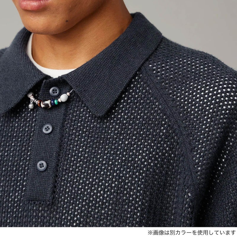 7. BLUE MONTE ブルーモンテ ウールニット オープンワーク ポロシャツ