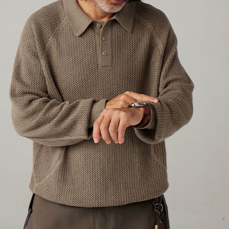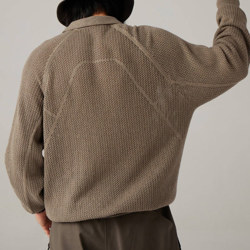 構造美と機能性を融合した、スタイリッシュなウールニットポロシャツ