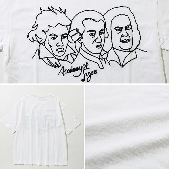 フロントにハンドル刺繍を施したコットンTシャツ。