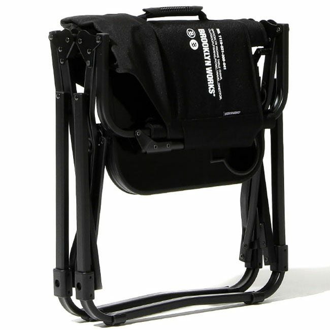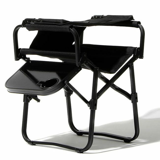 サイドテーブルと一体型の折り畳みチェアはローチェアより高く、シート高さ約42cmと座り心地と安定感のあるチェアです。