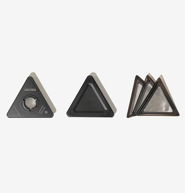 ドリッパーのケースを開けると三角形が3つあり、パズルのように形を作る商品です。