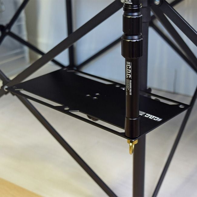 プレートを挟み込むように1/4"インチオスネジとメスネジを接続してポールやフックなどをセットすることも可能。