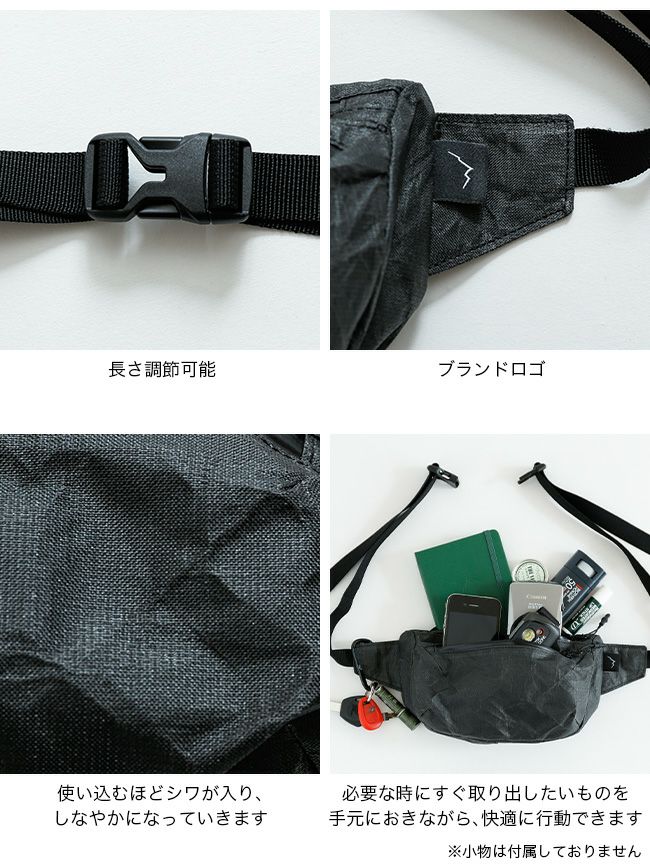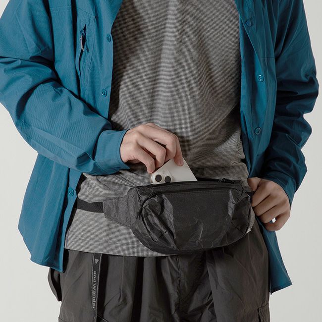 サイズ感も絶妙で、ウエスト、ヒップ、肩掛けとして使えるほか、薄さを活かしてバックパックの外ポケットに収納することも可能です。