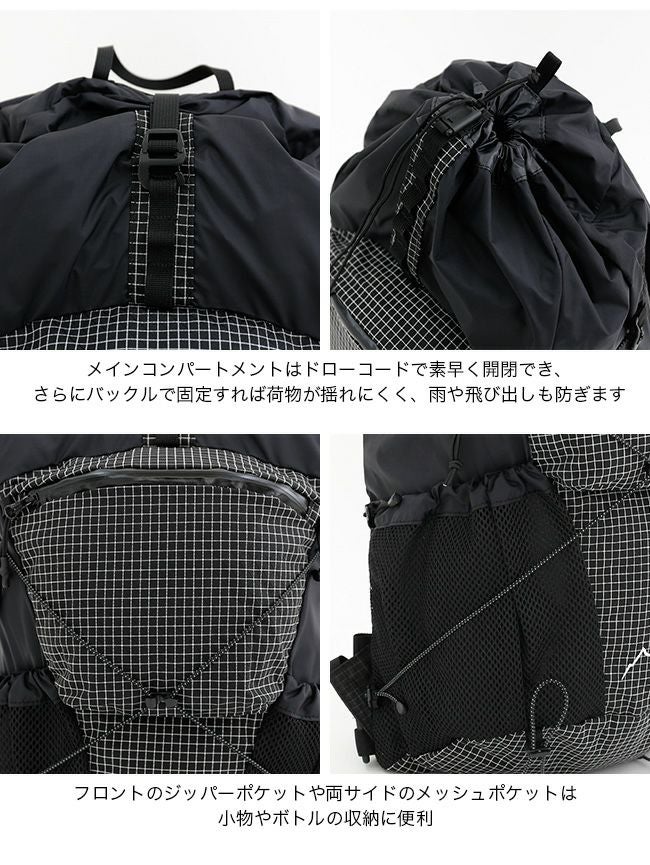 軽快な背負い心地と高い耐久性を両立するため、メイン素材には軽量でしなやかな70Dリップストップナイロン(Nylon100%)を採用。