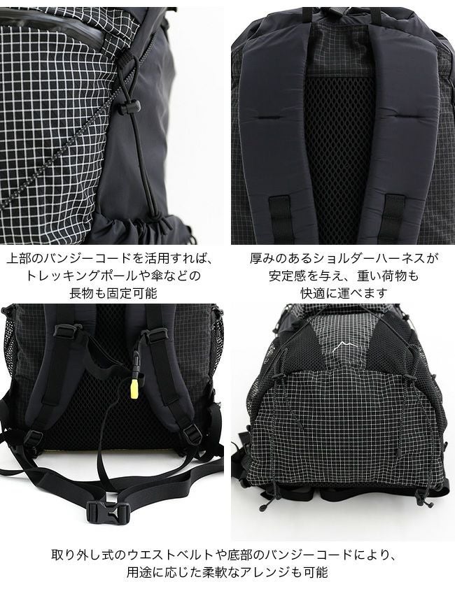 さらに、取り外し式のウエストベルトや底部のバンジーコードにより、用途に応じた柔軟なアレンジも可能です。