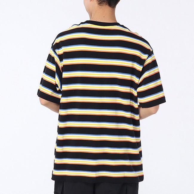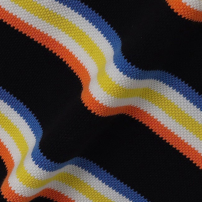 あそびゴコロのあるボーダー柄が魅力の、ポロシャツ素材を用いたTシャツ。