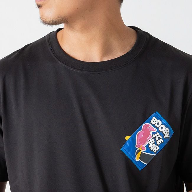 左胸には海外のアイスクリームのパッケージをイメージしたポケットを配し、背面にはブービーの形をしたキュートなアイスクリームをプリント。