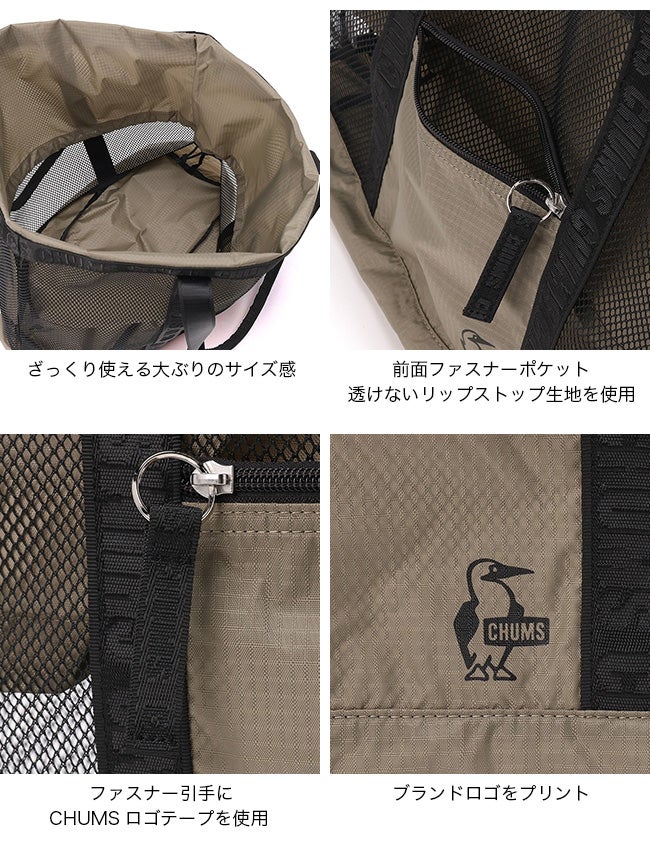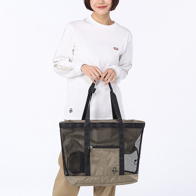 水辺のアクティビティでも活躍する、軽やかなメッシュ素材のトートバッグ