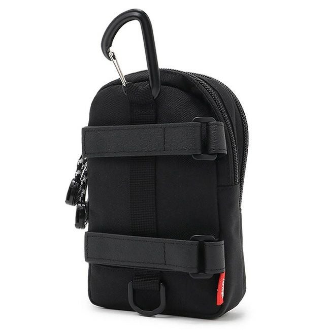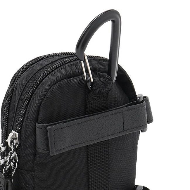 背面にはショルダーハーネスに取り付けられるベルト付きで、アクティブなシーンでも安定して持ち運べる多機能ポーチです。