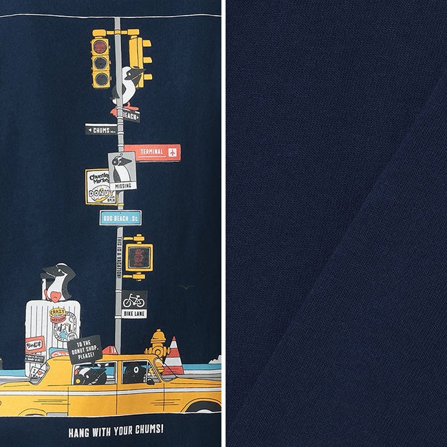 背面には、街の中で迷子になった仲間を探してブービーが奮闘する、CHUMSらしいユーモラスなシーンをプリント。