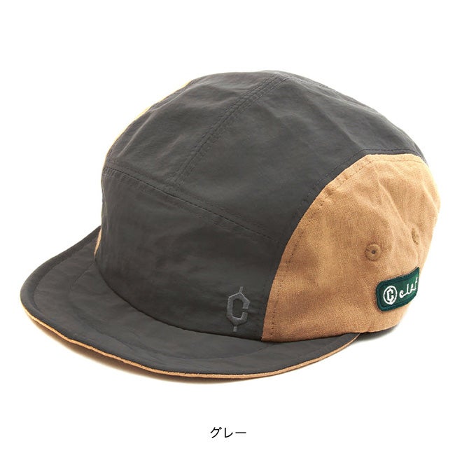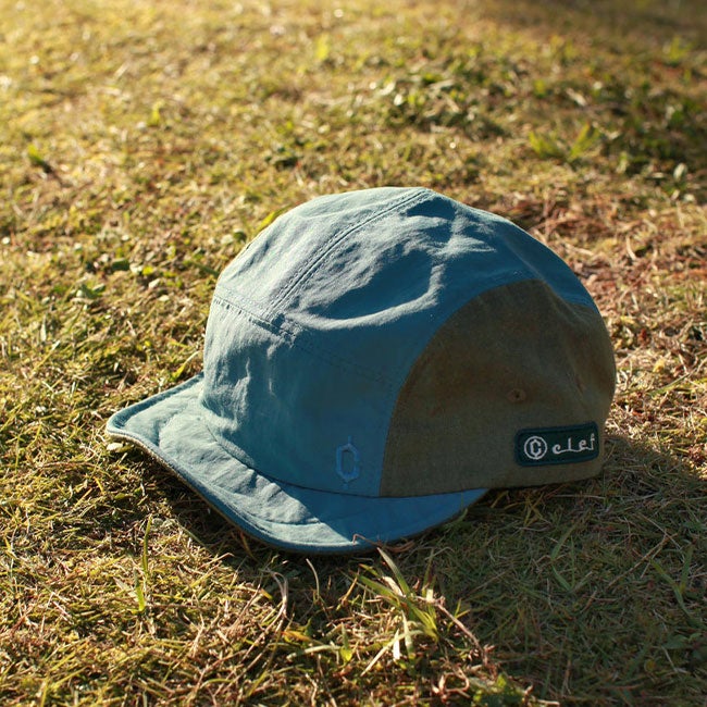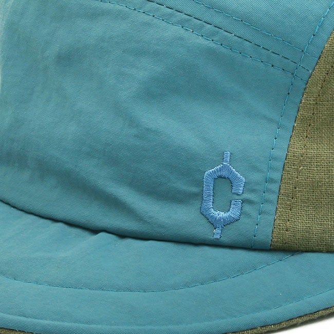 速乾性のあるナイロンのボディに、両サイドパネルにはコットンリネンの優しい風合いを、配色と共に大胆に切り替えしたジェットキャップ。