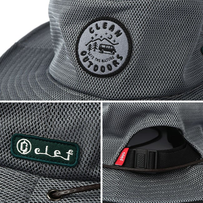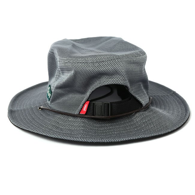 夏の日差しをさえぎる大き目のツバと、ハット全体を透け感が少なく風通しの良いメッシュでデザインされています。