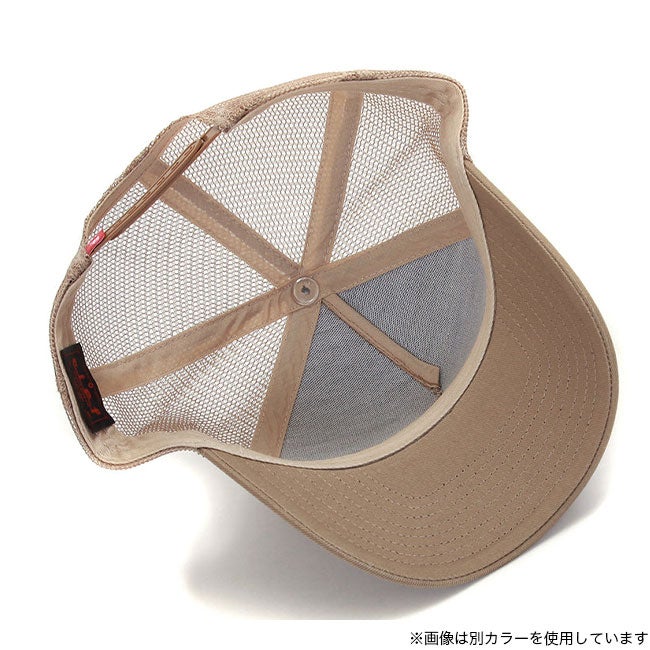 フロントのワッペンが特徴の、スタンダードなメッシュキャップ