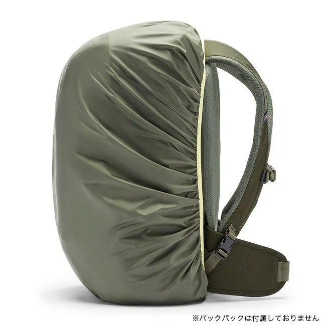 100%リサイクル素材で作られたこのレインカバーは、25~35Lの中型パックにフィットします。