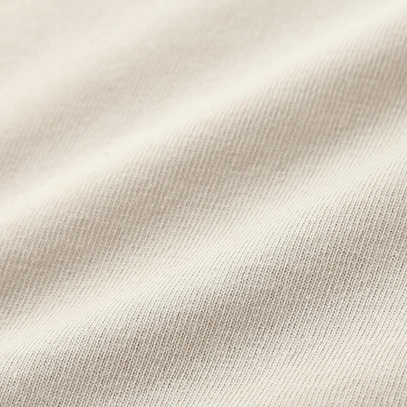 綿の風合いを生かしつつ、ポリエステルの軽さと機能性を併せ持ち、綿100%の空紡天竺のようなしっかりとした印象は残しながら、軽やかな生地に仕上がっています。
