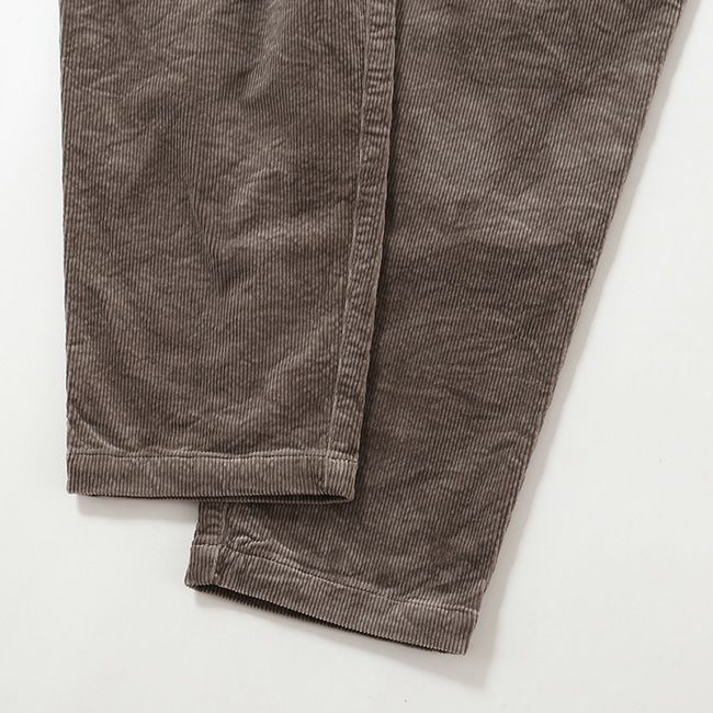 柔らかくストレッチの効いた太畝コーデュロイ素材を使用しイージーパンツ。