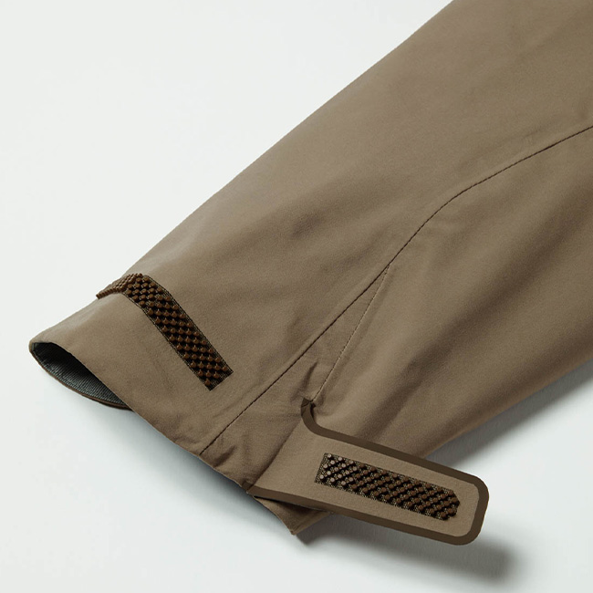 さらに袖口には雨に濡れてもホールド力を保ち、フィット性に優れるブロックフィットアジャスターを装備。