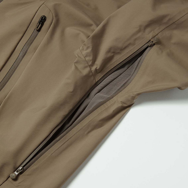 また、フードをコンパクトに収納するだけでなく、雨などの悪天候下での着用も考慮しフードへの水たまりを防ぐパラフードシステムを採用。